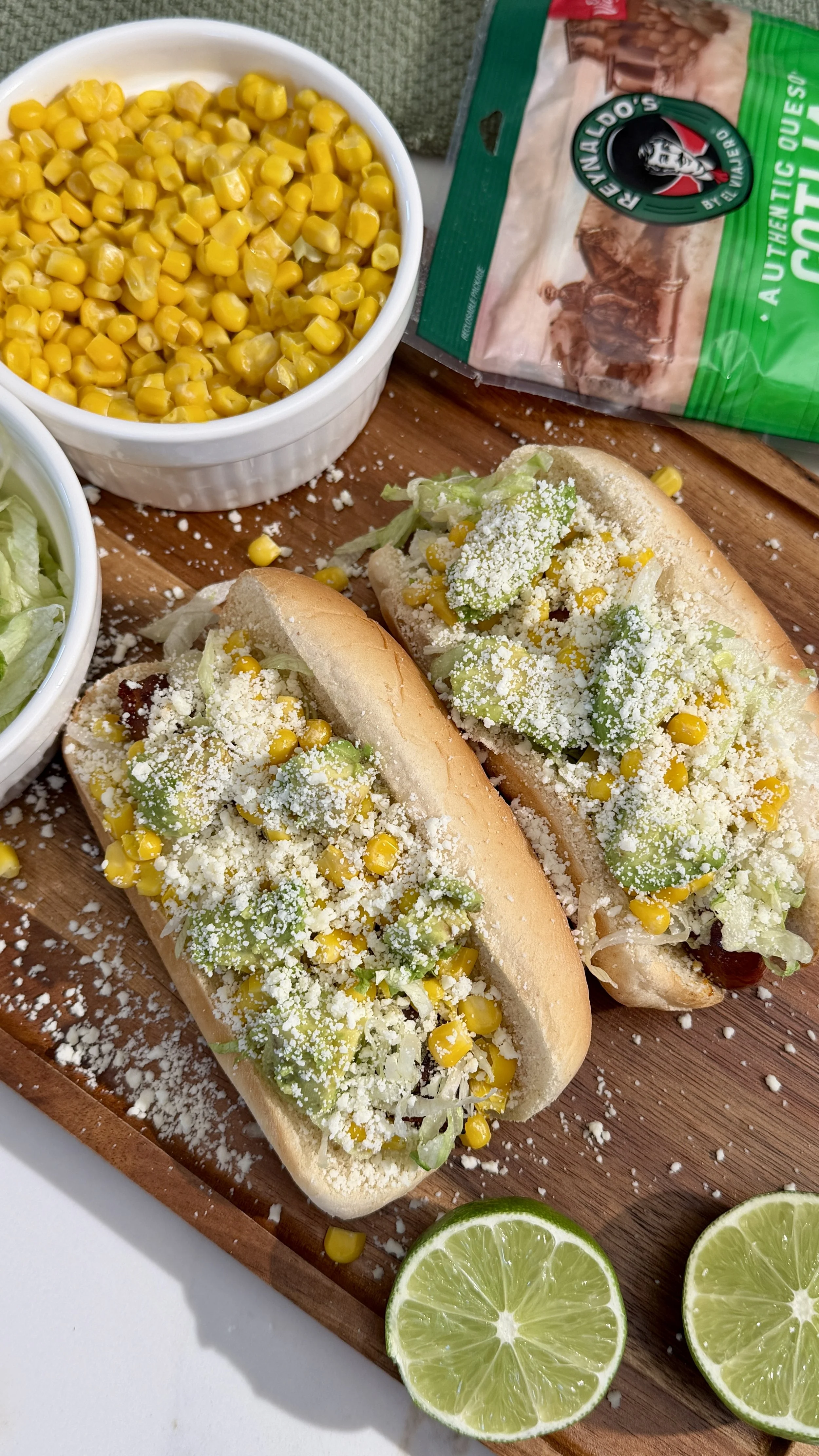 Place each griller into a bun, then top generously with elotes