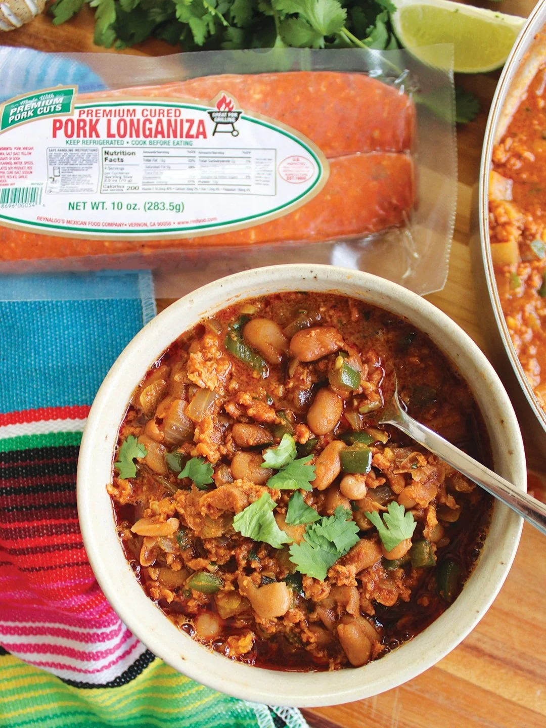 Add your seasonings, then add the beans. Return the Longaniza to the pot, stir everything together and add 2-3 cups water, until everything is covered. The more water you add, the soupier they will be.